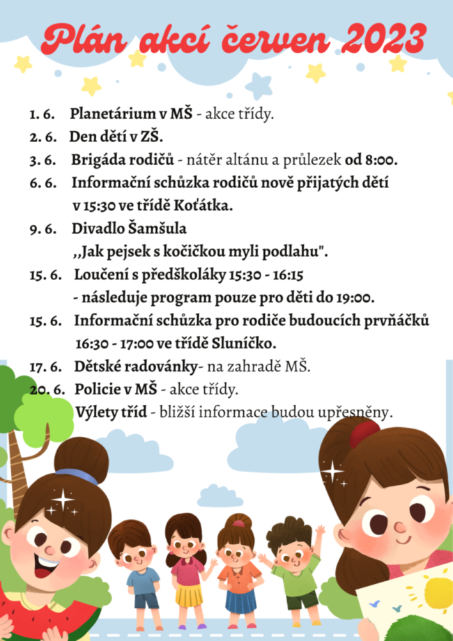 Vážení rodiče, zákonní zástupci žáků 6. tříd, do 6. ročníku naší školy přicházejí nejen děti z prvního stupně naší školy, ale i noví žáci ze spádových škol. Proto i letos organizujeme již tradiční adaptační pobyt, abychom dětem tento přechod usnadnili a pomohli jim vytvořit nový kolektiv a nová přátelství. Jejich vzájemné poznávání a sbližování v…