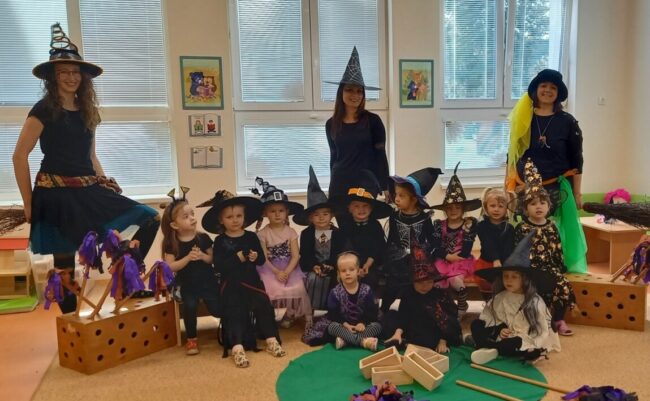 Celý týden si děti ze třídy Koťátek hrály na čarodějnické učně. Motivovány knihou „Malá čarodějnice“ se snažily stát hodnými a laskavými čarodějnicemi a čaroději, kteří pomáhají lidem dobrými skutky. Ti se učili například kouzlo proti zlobení, pro hezké počasí nebo pro dobrou náladu. Nesměl chybět také kurz létání na koštěti či vaření kouzelných lektvarů. V pátek…