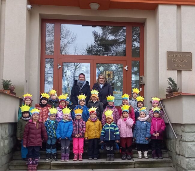 První týden v lednu nového roku se v naší mateřské škole nesl v duchu tradice Tří králů. Děti ze třídy Berušek byly v pátek 6. ledna popřát vše nejlepší žákům a zaměstnancům základní školy v Hnojníku. Děti i zaměstnanci MŠ Vám touto cestou přejí všechno nejlepší v novém roce. PF 2023.