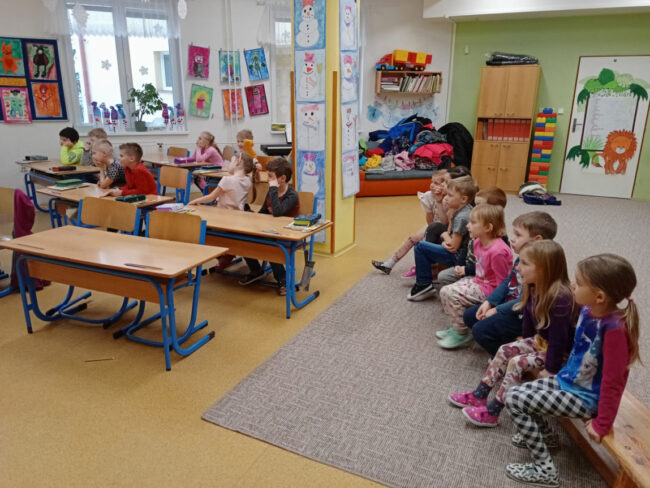 Hola, hola, škola volá! Předposlední lednový týden se naši předškoláci vydali na návštěvu do 1. tříd základní školy v Hnojníku. Paní učitelky prvňáčků si pro všechny připravily zajímavé úkoly na interaktivní tabuli, kde děti porovnávaly, co je větší nebo menší, poznávaly barvy, procvičily jednoduché počty. Dále se společně naučily básničku na písmeno A, vypracovaly pracovní list…
