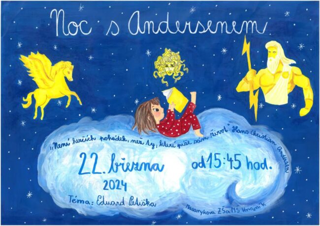 V pátek 22. března 2024 se naše škola opět připojí k celostátní akci „Noc s Andersenem“, kterou dětem chystají knihovníci a učitelé po celé České republice i v zahraničí. Letošní setkání je věnováno 100. výročí narození spisovatele Eduarda Petišky. Naše nejmenší žáky čeká krteček se svými kamarády i knihy o dětech a zvířátkách. Starší žáci se přenesou mezi mýtické…
