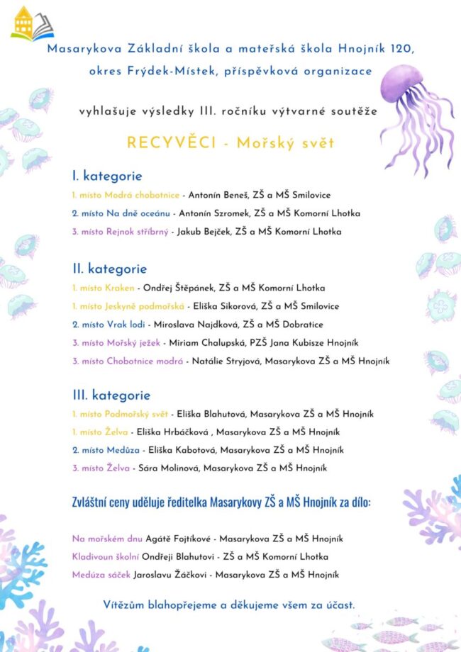Ředitelka Masarykovy Základní školy a mateřské školy Hnojník 120, okres Frýdek – Místek, příspěvková organizace,  podle ustanovení § 34 odst. 3, § 165 odst. 2 písm. b) a § 183 odst. 1 zákona č. 561/2004 Sb., o předškolním, základním, vyšším odborném a jiném vzdělávání (školský zákon), v platném znění, ve smyslu vyhlášky 14/2005 Sb., a v souladu…
