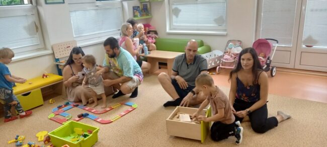 Jako již tradičně jsme ve 3. zářijovém týdnu přivítali ve školce rodiče našich nejmenších dětí z Koťátek. Během celého odpoledne měli všichni možnost si společně pohrát, zjistit, co si děti ve školce oblíbily, s kým si rády hrají, seznámit se a popovídat si u kávy, čaje a drobných pochutin. Tatínkové pomáhali stavět cesty pro auta a koleje…
