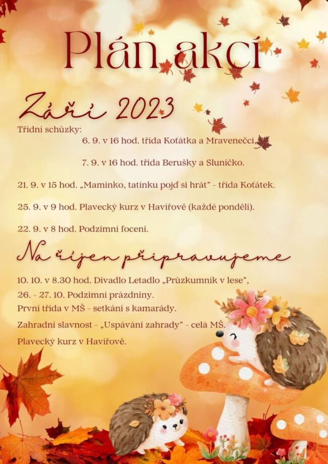 Informace k zahájení školního roku 2023/2024 v MŠ