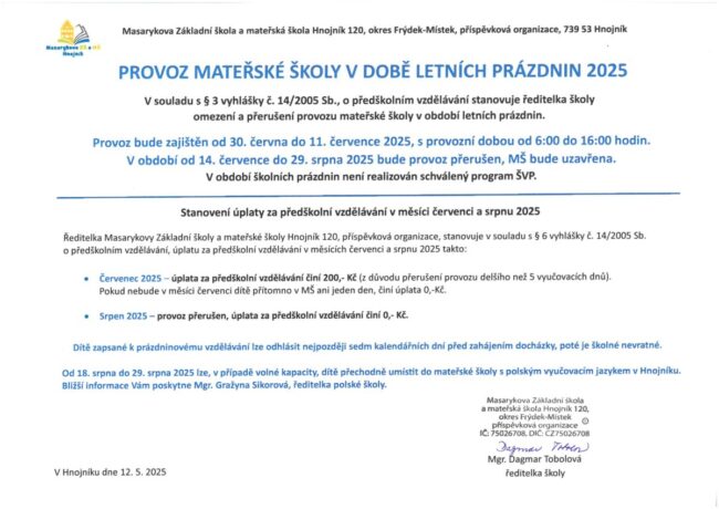 První červen již tradičně patří všem dětem. Má především upozornit světovou veřejnost na práva a potřeby našich nejmladších obyvatel. Tento den tak povětšinou probíhá především ve formě veselí a oslav a stejně tak se neslo dopoledne 30. května 2025 v naší mateřské škole. Na zahradě byly pro děti připraveny netradiční a zábavné disciplíny, které s větším nebo menším úspěchem…
