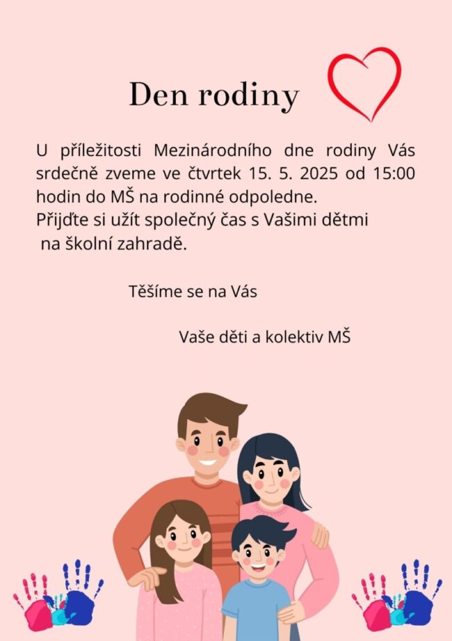 Dne 15. května je mezinárodní den rodiny, který připomíná její význam v našich osobních životech i ve společnosti. Nabízí zamyšlení, jak to se vztahy v naší rodině vlastně máme, jak o ně uvnitř rodiny pečujeme, jak je můžeme posilovat, jak ozdravovat. Rodina je zázemí, přístav, kam se můžeme vždy bezpečně vrátit, a také velmi křehký…
