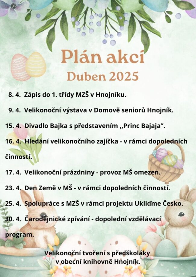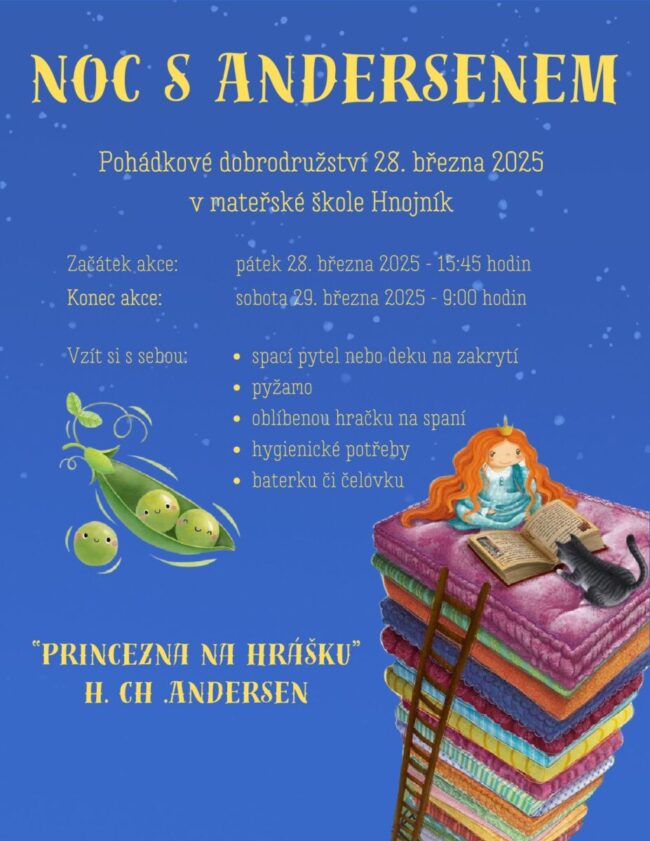 V pátek 28. března 2025 se v mateřské škole v Hnojníku konal Den a Noc s  Andersenem. Jednalo se již o 25. ročník mezinárodní akce knihoven na podporu dětského čtenářství u příležitosti 220. výročí narození dánského pohádkáře H. Ch. Andersena. A protože v pohádkách je možné všechno, tak i nám se přihodilo něco neuvěřitelného! Ve…