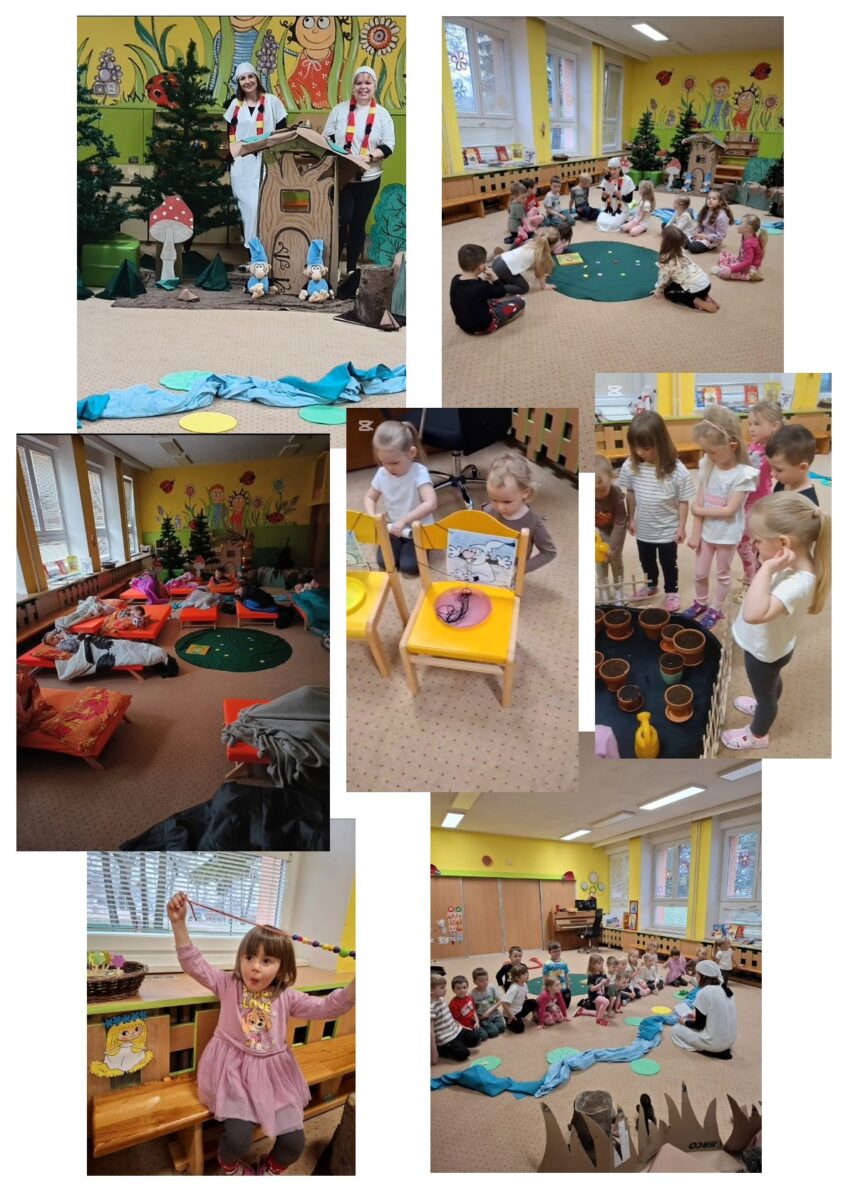 I letos se naše mateřská škola zapojila do mezinárodního projektu „Noc s Andersenem“ na podporu dětského čtenářství, která se koná u příležitosti výročí narození dánského pohádkáře Hanse Christiana Andersena a Mezinárodního dne dětské knihy. Letos jsme se inspirovali pohádkářem Václavem Čtvrtkem (115 výročí) – pohádkami z knížky „Rumcajs“ a „Křemílek a Vochomůrka“. Tato akce se konala v pátek 27. března 2026 a v mateřské škole probíhal: