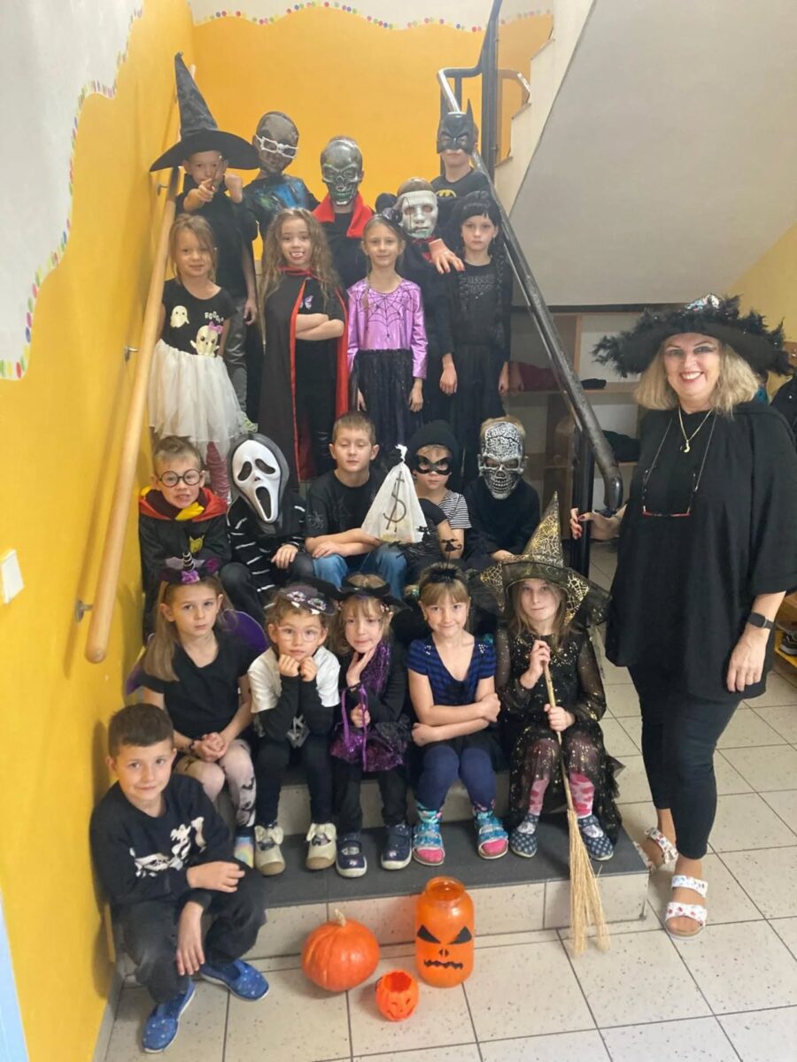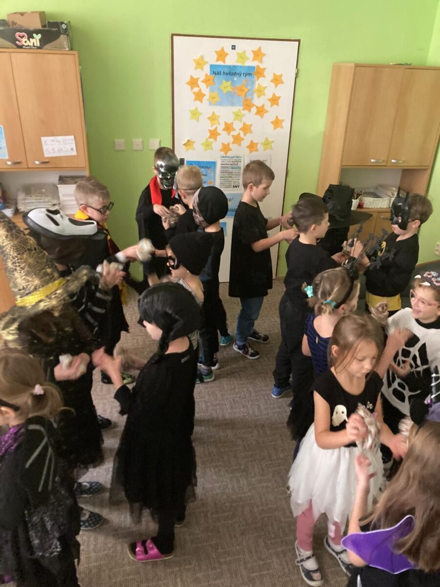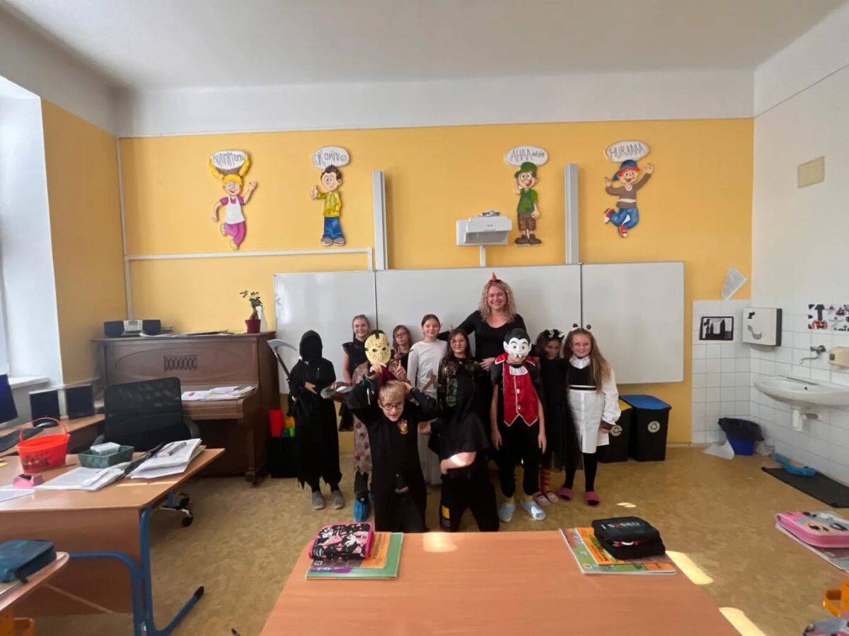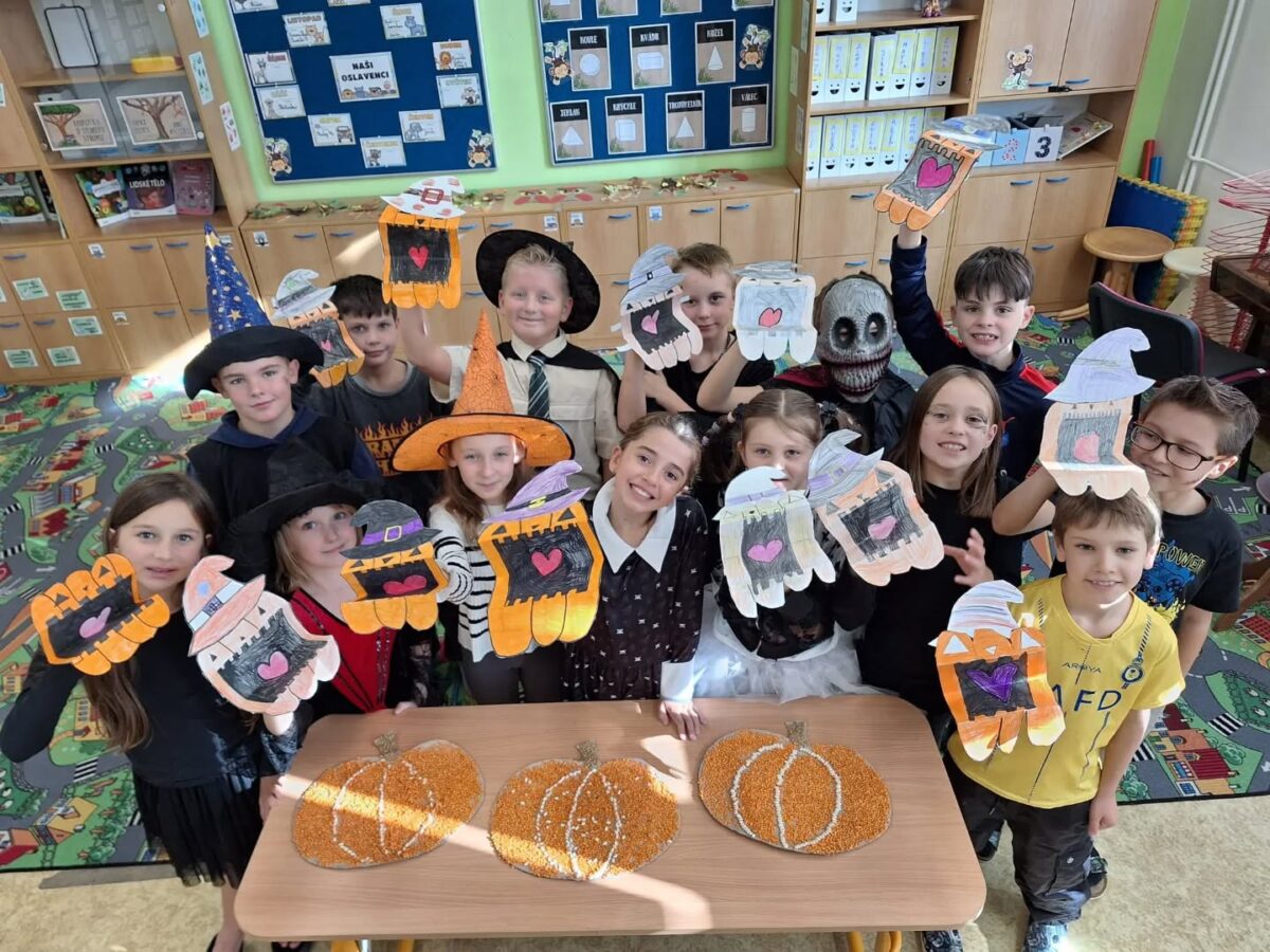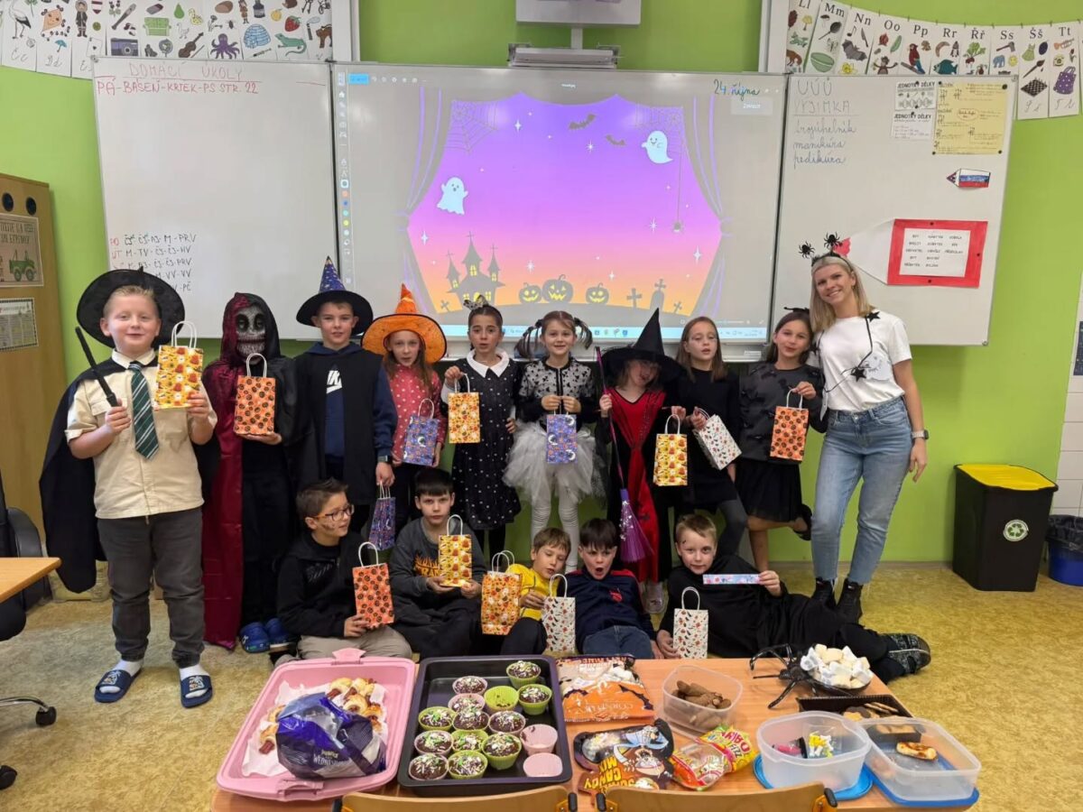 Žáci během tematického dne četli texty o Halloweenu a Dušičkách, díky nimž se dozvěděli mnoho zajímavostí. V rámci výuky tvořili vlastní lapbook, do kterého zaznamenali všechny nově získané poznatky. Den byl plný zábavných i vzdělávacích aktivit, nechyběl matematický a obrázkový diktát, v hodinách českého jazyka žáci sepisovali recepty na kouzelné lektvary, luštili křížovky a při kooperativní výtvarné práci společně vytvořili působivý halloweenský obraz.