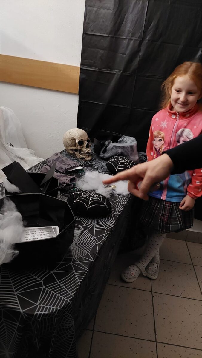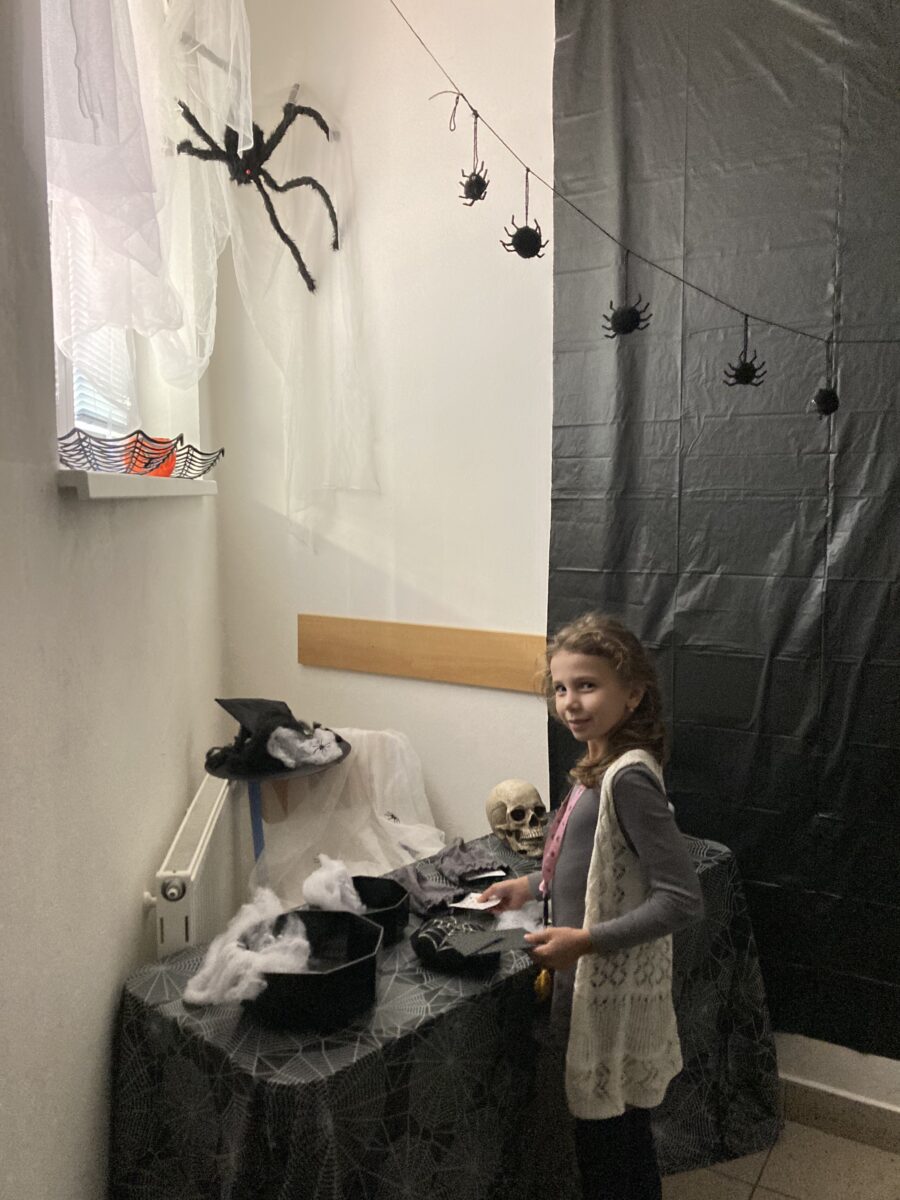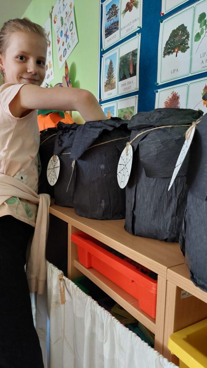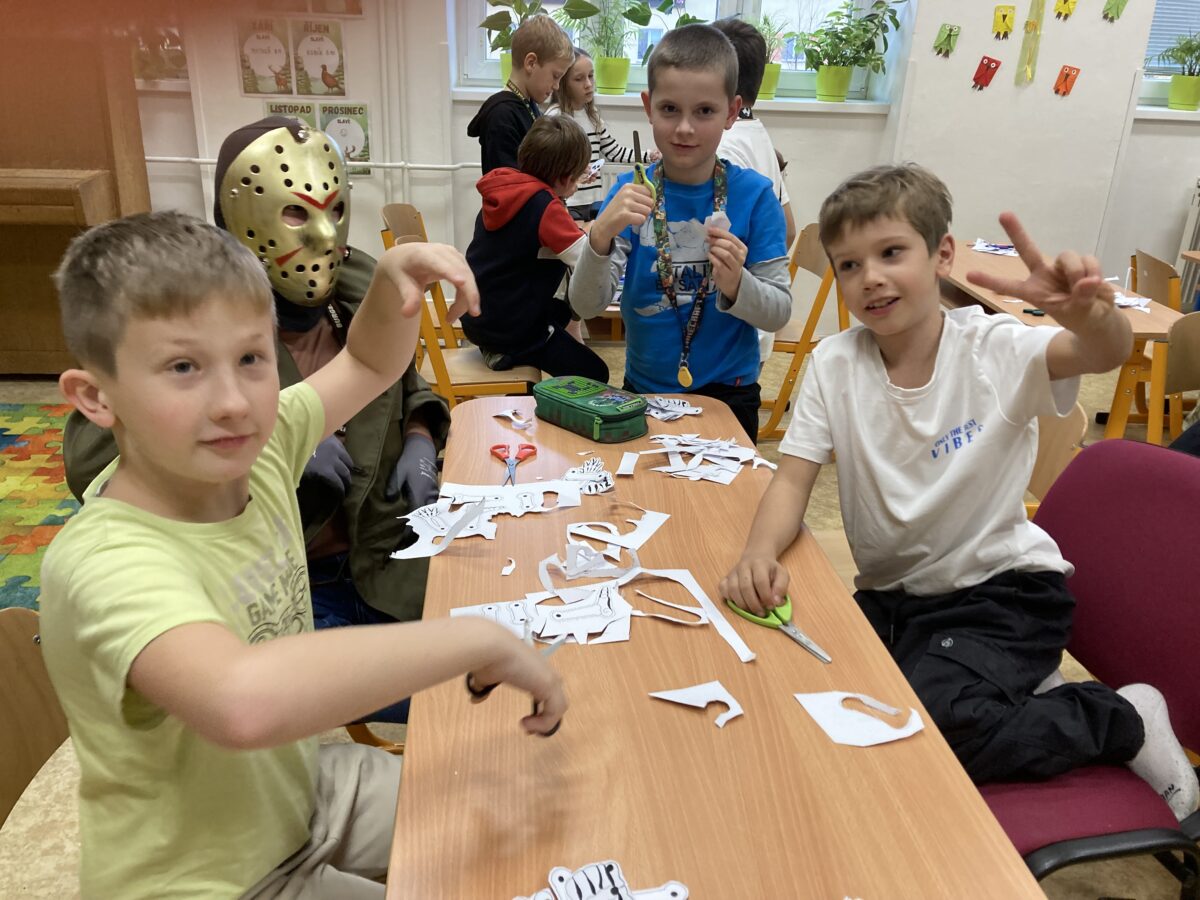 Společná akce školních družin I., II. a III. oddělení se uskutečnila 3. a 4. listopadu. Děti se vydaly na strašidelnou stezku, která je zavedla až k doupěti čarodějnice, kde plnily různé úkoly a kvízy. Poté se proplazily pavučinou a zamířily do dýňové místnosti, kde si ozdobily napečené perníčky, vyrobily netopýra a zažily spoustu nečekaných překvapení při hmatové a smyslové hře. Na závěr navštívily čarodějnou laboratoř, kde si samy vyzkoušely několik zajímavých pokusů. Každé dítě bylo odměněno muffinem, kouzelným lektvarem z kotlíku a odneslo si své výrobky kostlivce a pavouka.