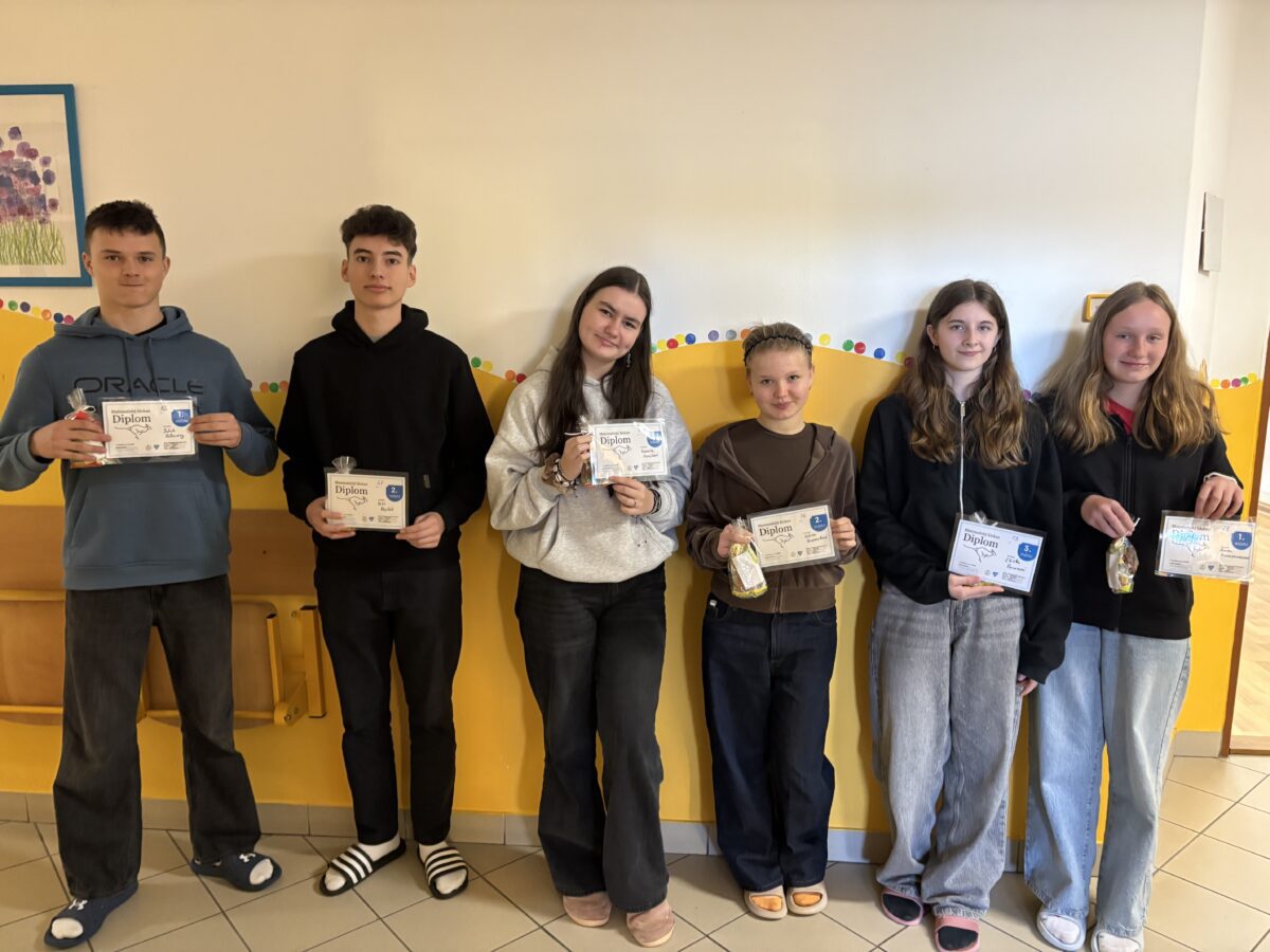 v kategorii Cvrček se na 1. místě umístila Aneta Franková ze 3.A s 64 body, na 2. místě Adam Oubrecht ze 3.B s 63 body a na třetím místě Petr Krzyžanek z 2.B s 56 body z celkových 80 bodů