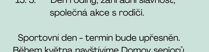 PLÁN AKCÍ NA MĚSÍC KVĚTEN 2025