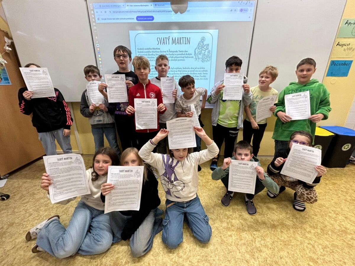 Pustili jsme se také do analýzy legendy o sv. Martinovi. Všichni ve třídě zkoumali, jaký Martin ve skutečnosti byl, proč rozstřihl plášť a jaké poselství nám zanechal. Mnohé závěry byly tak moudré či originální, že by je Martin sám určitě ocenil.